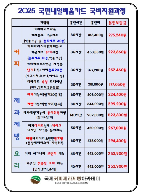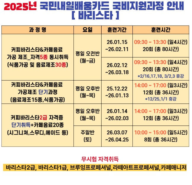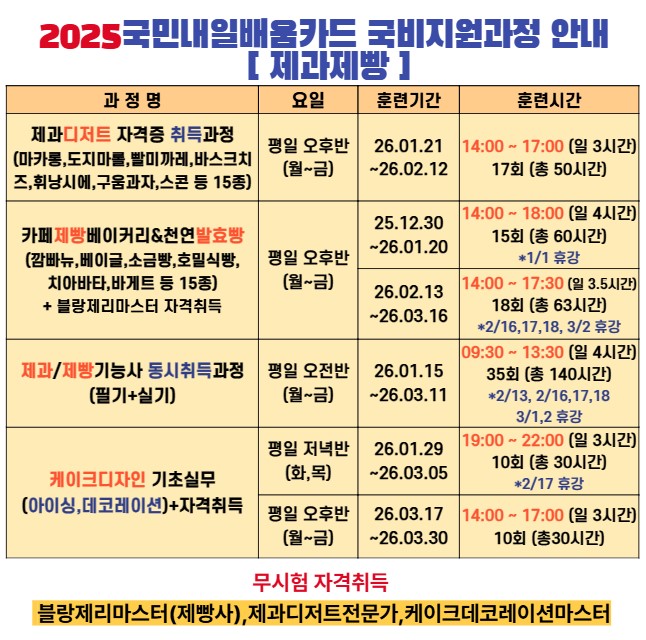 2025년도 국민내일배움카드 국비지원과정 개강일정_시간표 첨부